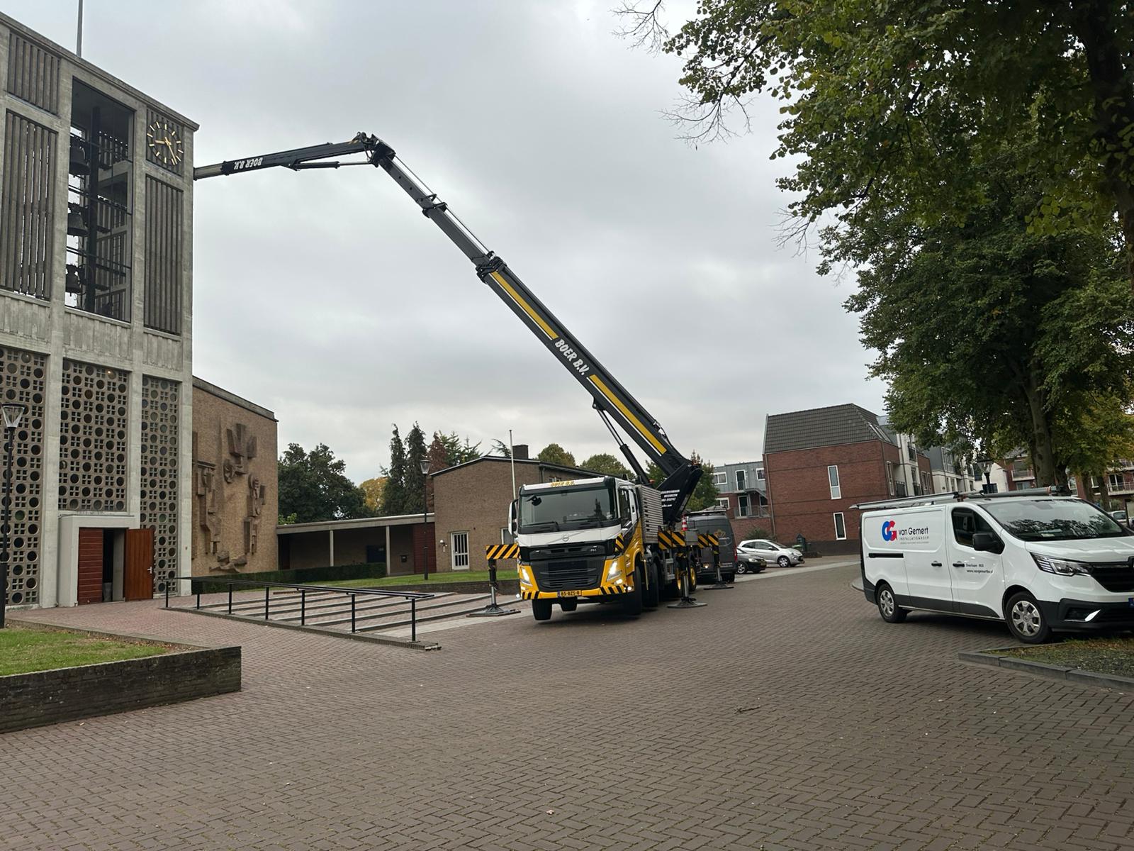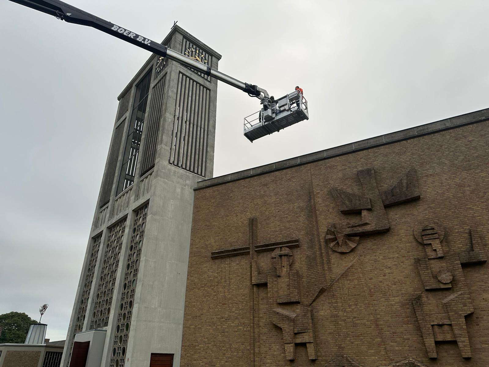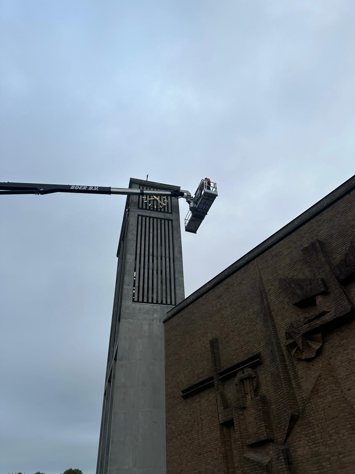 Vrijdag 26 september is het uurwerk op de kerktoren vervangen. Rond 7.30 uur arriveerde een grote hoogwerker bij de kerk.
